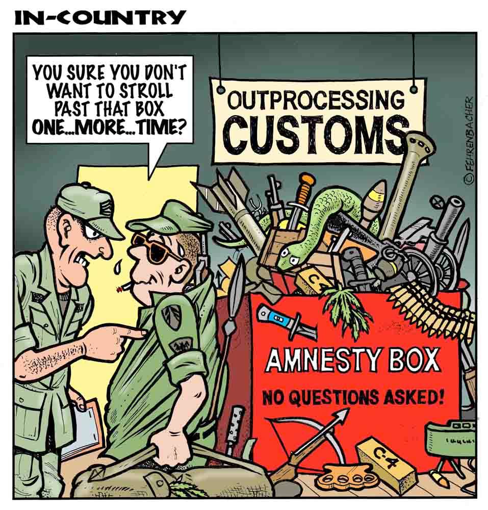 Phil enlisted in the Army in 1965 where you served for years in Vietnam. He became a graphic designer and has worked for the state of Oregon for 26 years. He retired in 2003 and started the Cartoon "In-Country". The cartoons reflect his experiences during his tour of duty in South Vietnam.
